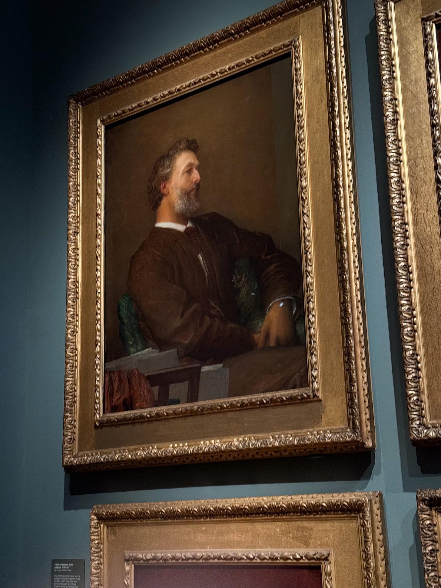 One thing struck me as I walked through the halls of this proud gallery: there were an awful lot of paintings of men looking away. That is, their gaze was not on us, the viewer, but somewhere off to the side, sometimes even downward.
