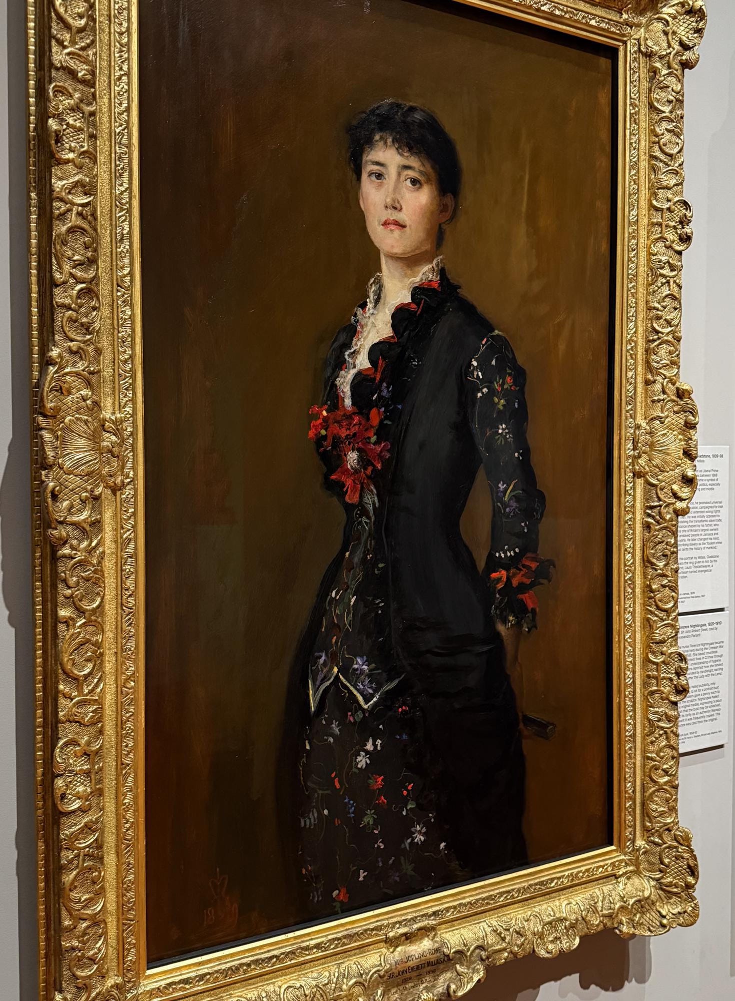 Portrait artist Louise Jopling, an ardent supporter of votes for women. One day as she was sitting for this portrait she forgot to hold her tranquil expression, resulting in what she called 'the defiant look' on her face.